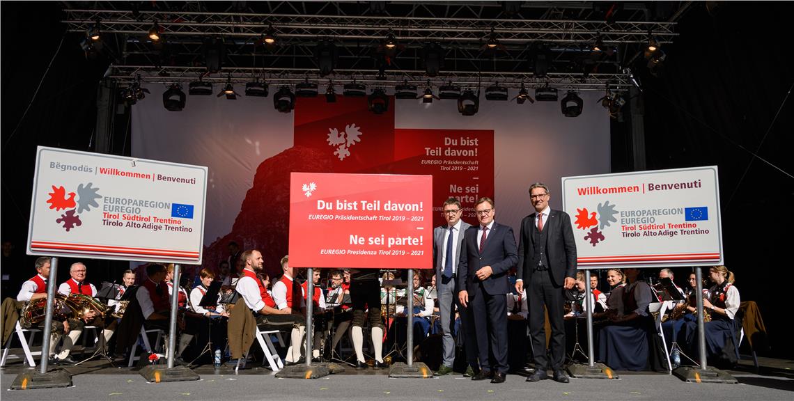 Die heutige Übergabe der Präsidentschaft, an der auch der Landeshauptmann des Trentino Maurizio Fugatti teilnahm, fällt zeitgleich mit dem Ende des Jubiläumsjahres, das Kaiser Maximilian gewidmet ist, zusammen. "Kaiser Maximilian war ein Tiroler im Herzen und ein Europäer im Geiste – passend dazu haben wir die beiden Festlichkeiten zusammengelegt, um diesem Motto zu entsprechen und gemeinsam mit der Bevölkerung zu feiern", betonte in diesem Zusammenhang der Tiroler Landeshauptmann Günther Platter. Gemeinsam mit der Tiroler Kulturlandesrätin Beate Palfrader und dem Innsbrucker Bürgermeister Georg Willi blickte Platter auf das Jubiläumsjahr uns seine über 250 Veranstaltungen zurück.