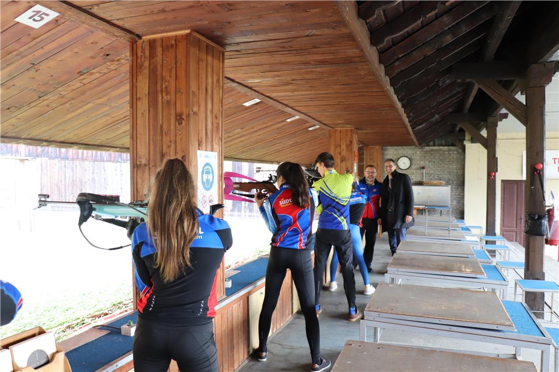 Landeshauptmann und Sportlandesrat Arno Kompatscher hat gestern Nachmitag (30. Oktober) dem Schießstand Moritzing im Westen der Landeshauptstadt einen Besuch abgestattet und sich dabei für eine Modernisierung der Anlage ausgesprochen, in der er großes Entwicklungspotential sieht: "Der Schießstand könnte zu einem modernen Ausbildungszentrum für Sportschützen und – im Hinblick auf die Olympischen Winterspiele 2026 – für Biathleten werden und optimale Trainingsbedingungen bieten."
