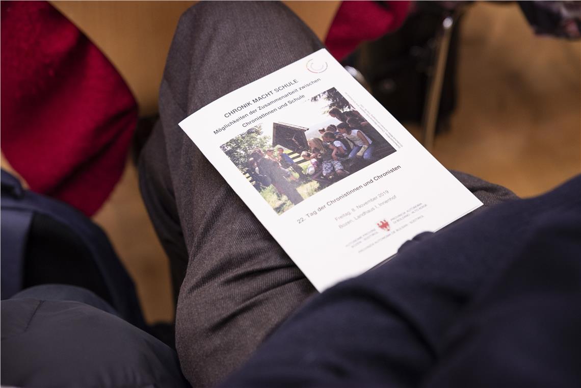Ein Schwerpunkt des Tages lautete Chronik macht Schule. Der Inspektor des deutschen Bildungsressorts Christian Walcher bezeichnete die Gegenwart "Eisberg auf dem Fundament der Geschichte." Laut Walcher haben Chronistentätigkeit und Schule vieles gemeinsam: „Ereignisse zu sehen und sie zu hinterfragen, bedeutet, sie zu vertiefen und ständig an den eigenen Kompetenzen zu arbeiten.“