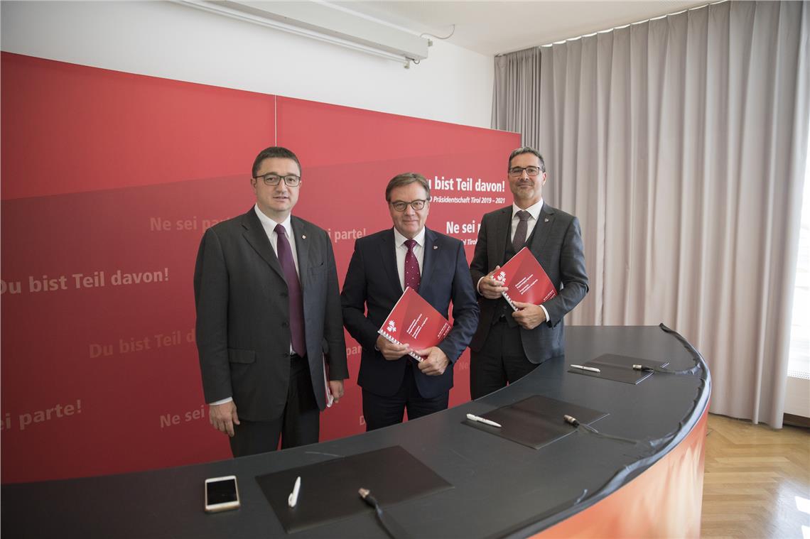 Die Bevölkerung wird die Europaregion Tirol-Südtirol-Trentino besonders akzeptieren, wenn sie immer mehr auch deren Nutzen spürt. Dieses Ziel hat der Euregio-Vorstand mit dem Regierungsprogramm 2019-2021 vor Augen, das er heute (Do., 14. November) in Alpbach, Tirol, verabschiedet hat.