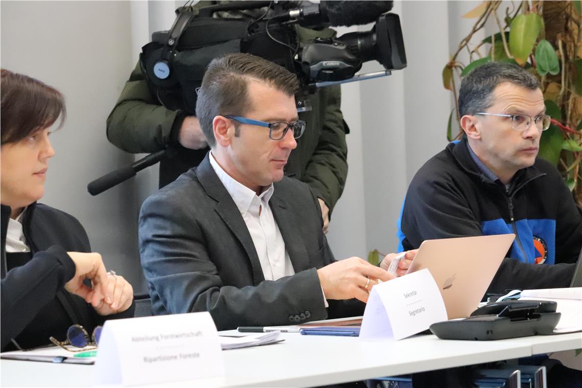 "Optimales Zusammenspiel und vorausschauende Planung haben sich bewährt", unterstrich auch der für den Bevölkerungsschutz zuständige Landesrat Arnold Schuler in seiner Funktion als Vorsitzender der Landesleitstelle. Einmal mehr habe sich gezeigt, wie wichtig es sei, die Präventionsmaßnahmen weiter zu führen. Schuler dankte allen Bereichen, vom Regierungskommissariat und den Gemeinden über den Landeswetterdienst und den Lawinenwarndienst, die Hydrologie, das Landeswarnzentrum, den Straßendienst, die Landesabteilung Forstwirtschaft und das Landesforstkorps, die Landesverkehrsmeldezentrale, den Landesfunkdienst, das Lagezentrum der Berufsfeuerwehr, die Freiwilligen Feuerwehren, die Landesnotrufzentrale mit dem Dienst für Rettungs- und Notfallmedizin und die Landesgeologen bis zum Stromverteiler Edyna, der heute durch Generaldirektor Luis Amort vertreten war. Alle hätten unter sehr schwierigen Bedingungen Großartiges geleistet. Besonders verwies Landesrat Schuler auf den enormen Wert des Freiwilligen-Wesens, aber auch das Organisatorische im Hintergrund spiele eine große Rolle.
