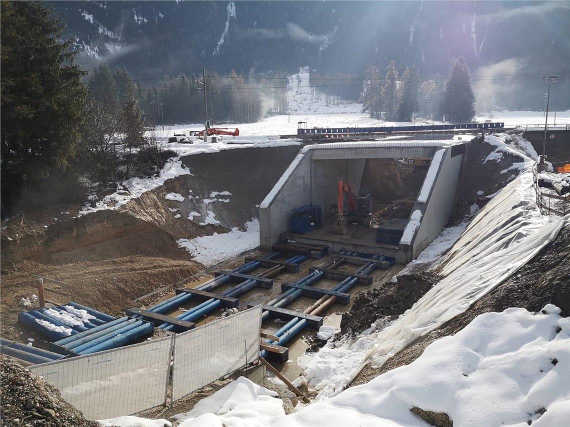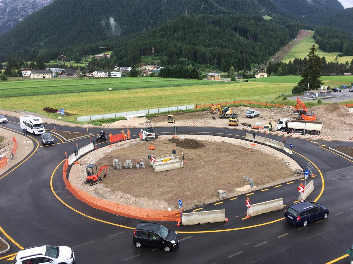 Im April sind die Arbeiten für die Kreisverkehre an zwei Kreuzungen der Staatsstraße (SS 49) in Toblach gestartet, jetzt können sie schon befahren werden. An der Bahnunterführung wird weiter gebaut.