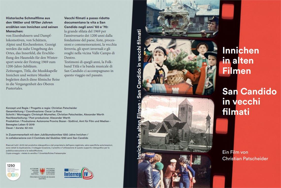 Innichen hat im abgelaufenen Jahr 2019 sein 1250-jähriges Bestehen gefeiert, das auf die Gründung des Klosters Innichen im Jahr 769 durch Herzog Tassilo III. zurückgeht. Zu den verschiedenen Initiativen des Jubiläumsjahrs gehört auch die Produktion des Films "Innichen in alten Filmen" von Christian Patscheider. Der Film wurde im Rahmen des Interreg-Projekts "Bewegtes Leben" vom Landesamt für Film und Medien in Zusammenarbeit mit dem Jubiläumskomitee Innichen realisiert.