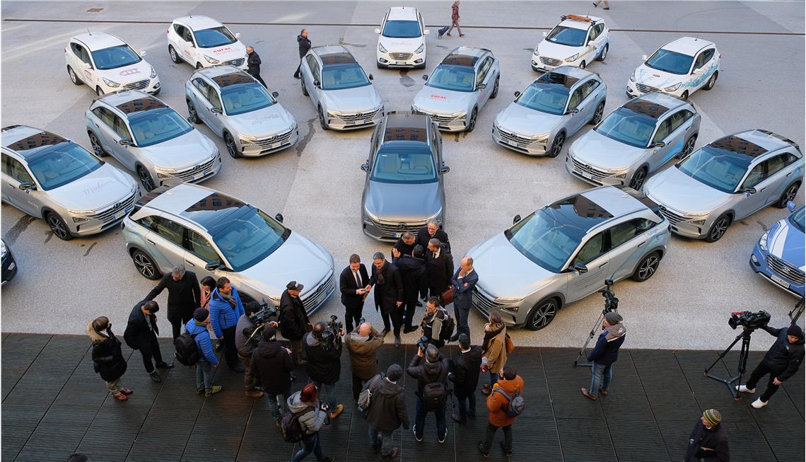 Die zehn neuen Modelle ergänzen die bereits 2013 angekauften ersten zehn elektrisch angetriebene Wasserstoff-PKWs in Südtirol. Gemeinsam bilden sie die größte Wasserstoffflotte Italiens und in der Europaregion Tirol. "Mit seinen verschiedenen Pilotprojekten", sagte Landeshauptmann Kompatscher, „hat Südtirol seit Jahren Know-how aufgebaut und teilt es mittlerweile sowohl mit unseren Nachbarländern als auch mit dem restlichen Italien und Europa. Besonders freut uns, dass inzwischen auch die Länder Tirol und Trentino – ermutigt durch die Südtiroler Erfolge – großes Interesse am zügigen Aufbau dieser Technologie haben." So arbeite Südtirol nicht nur an einem eigenen Wasserstoffplan, sondern auch einer Strategie der gesamten Europaregion. "Nur gemeinsam das uns alle betreffende Problem des Schwer- und Transitverkehrs längs der Brennerachse lösen", sagte Kompatscher und nannte das Ziel, aus Südtirol eine Modellregion in Sachen Nachhaltigkeit, eine sogenannte green region, zu machen: "So verfolgen wir die Ziele des Klimaschutzes wie der Gesundheit und Lebensqualität der Bürgerinnen und Bürger in einem und können Südtirol zunehmend für nachhaltig orientierte Gäste attraktiv machen."