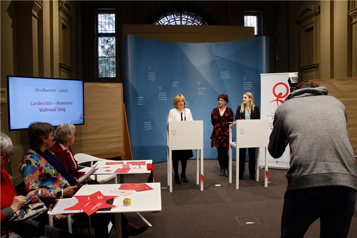 Der 8. März ist der Internationale Tag der Frau. 2020 wird er zum 100sten Mal an diesem Tag begangen. "Dies ist kein Grund zum Feiern, sondern ein Grund zum Nachdenken", betonte die Präsidenten des Beirates für Chancengleichheit, Ulrike Oberhammer. Nach 100 Jahren sei einiges der ursprünglichen Forderungen bereits alltäglich – sie haben seit 1946 das Wahlrecht, können sich seit 1970 scheiden lassen, bis 1981 wurden Ehrenmorde in Italien kaum bzw. sehr gering bestraft. "Die Rechte gab es nicht geschenkt, sondern wurden erstritten und erkämpft. Das wird heute oftmals vergessen. Frauennetzwerke halfen dabei und helfen auch heute noch dabei, Ziele gemeinsam zu erreichen", erinnerte die stellvertretende Beiratspräsidentin Donatella Califano. Landesrätin Waltraud Deeg lobte den Kampfgeist der Beiratsfrauen und rief dazu auf, das Engagement weiter zu führen: "Es darf der Gesellschaft nicht egal sein, dass Frauen weniger Lohn erhalten, ein höheres Armutsrisiko im Alter haben oder dass beinahe täglich Frauenmorde passieren." Alle seien gefordert darauf hinzuweisen und daran zu arbeiten, diese Ungleichheiten und Ungerechtigkeiten zu ändern.