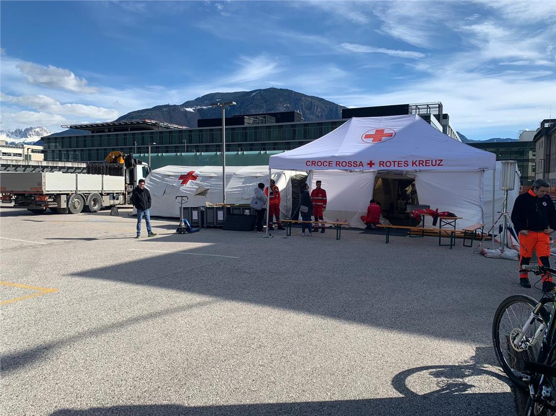 Das Südtiroler Gesundheitssystem bereitet sich organisatorisch auf eine weitere Ausbreitung von Covid-19 vor. Sichtbares Zeichen dafür sind die heute und gestern vor den Krankenhäusern von Bozen und Brixen aufgestellten Pre-Triage-Zelte. Dadurch werde die Sicherheit in den Krankenhäusern erhöht, wie Notfallmedizin-Primar Marc Kaufmann unterstreicht: "Die Zelte sind Teil unserer organisatorischen Vorbereitungen, zu denen auch der Aufschub von verschiebbaren Operationen gehört, um Kapazitäten freizuhalten, sollten wir sie brauchen."