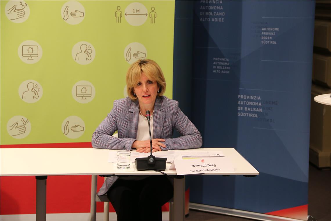Im Großteil der Südtiroler Seniorenwohnheime ist die Lage stabil, berichtete heute (24. März) Landesrätin Waltraud Deeg bei der Virtuellen Medienkonferenz der Landesregierung. Dies sei unter anderem auf die schnellen und entschiedenen Präventivmaßnahmen zurückzuführen, die bereits Anfang März ergriffen wurden und eine Einschränkung der sozialen Kontakte vorsahen. "Es handelt sich hier um ein sensibles Umfeld und um Menschen, die wir besonders schützen müssen, darum war es hier wichtig schnell zu handeln", betonte Deeg. Um das soziale Netz auch in Krisenzeiten aufrecht zu erhalten, brauche es das gesamte breite Feld des Sozialen. Im Hauspflegedienst beispielsweise sind aktuell über 250 Mitarbeiterinnen der insgesamt 339 im Dienst und betreuen über 1650 Menschen. "Momentan wird in allen Bereichen eine großartige Arbeit geleistet und die Zusammenarbeit zwischen den einzelnen Einrichtungen und Instanzen funktioniert vielleicht so gut wie nie zuvor. Das macht mich sehr optimistisch, dass wir diese Krise trotz allem gut meistern werden", sagte die Landesrätin.