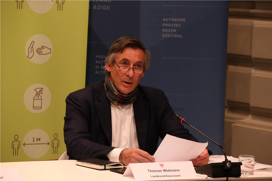 Die Situation im Gesundheitsbereich, speziell auch die beim aus China importierten Schutzmaterial getroffenen Maßnahmen, erkläuterten Gesundheitslandesrat Thomas Widmann und der Generaldirektor des Südtiroler Sanitätsbetriebes (Sabes) Florian Zerzer.
