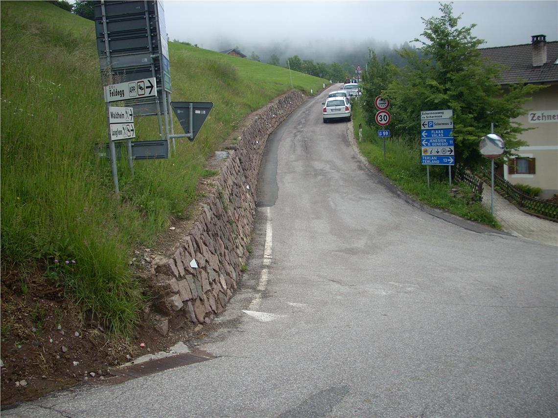 Auf einer Länge von 300 Metern wurde an der Kreuzung der Landesstraße Jenesien (LS 99) mit der Gemeindestraße zum Ortskern von Mölten unter der Regie der Landesabteilung Tiefbau ein Sicherheitseingriff gemacht. Dabei wurden die Fahrbahnen erweitert. An der bisherigen Kreuzung gab es vor allem für Busse und Transportfahrzeuge Schwierigkeiten beim Abbiegen, und zwar in sowohl in Richtung Mölten, als auch in Richtung Jenesien. Im Zuge der Arbeiten an der Kreuzung wurden auf der Landesstraße in Richtung Flaas auch zwei spitze Kehren erweitert. Es fehlen noch die Asphaltierungsarbeiten im Kreuzungsbereich, die im Juli durchgeführt werden.