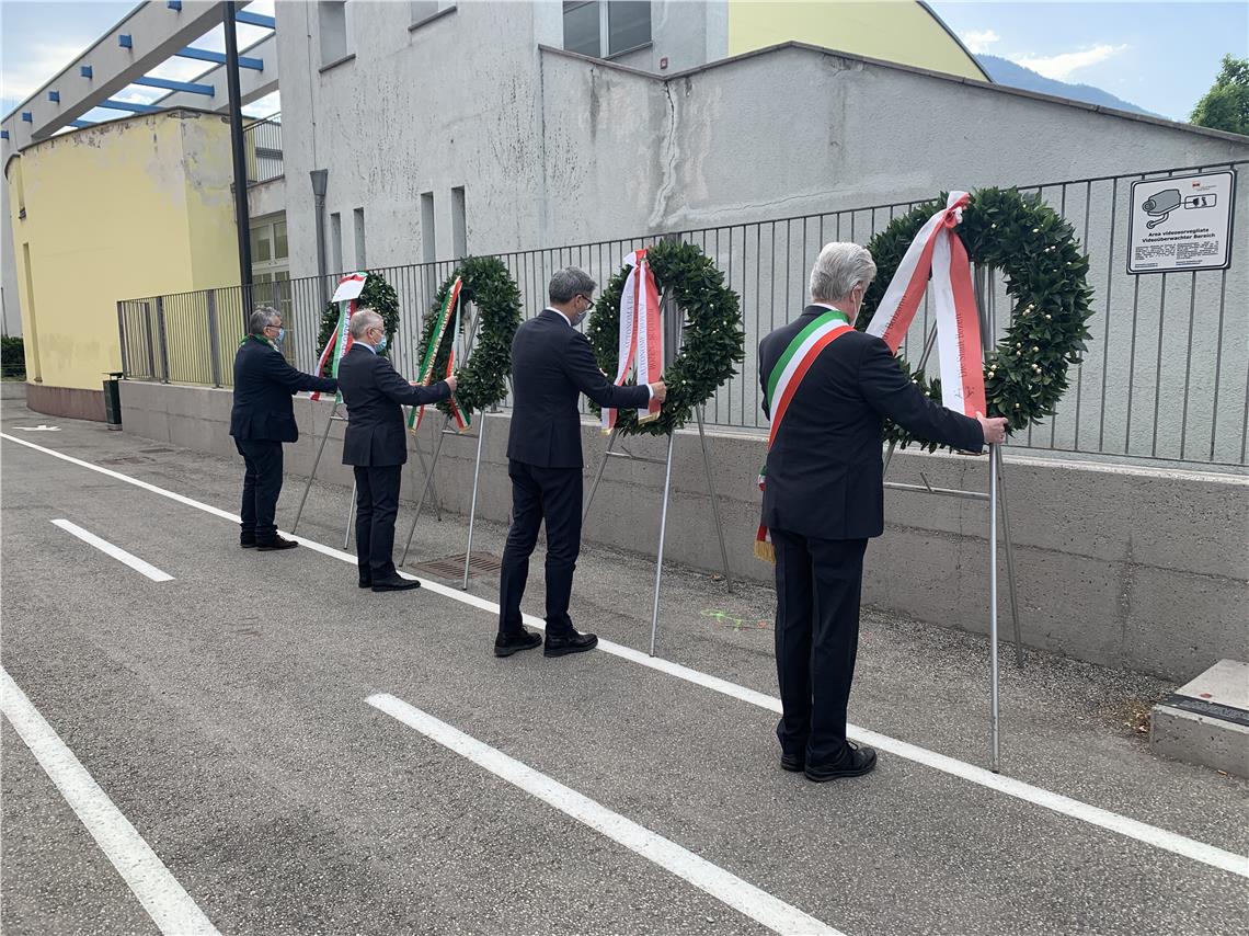 Am heutigen Staatsfeiertag (25. April) hat Landeshauptmann Arno Kompatscher gemeinsam mit dem Regierungskommissär Vito Cusumano, dem Bürgermeister von Bozen Renzo Caramaschi und dem Südtiroler Präsidenten der Italienischen Vereinigung der Partisanen ANPI Guido Margheri an einer Gedenkfeier mit Kranzniederlegung an der Mauer des ehemaligen Lagers in der Reschenstraße in Bozen teilgenommen.