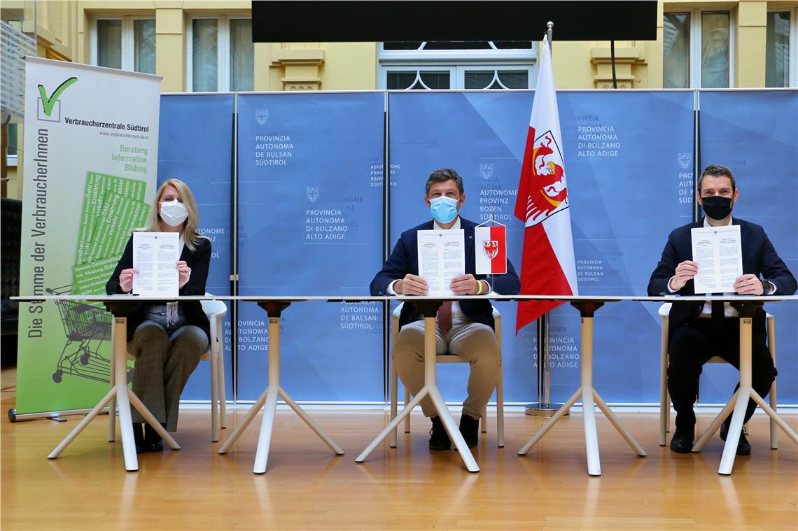 Die Rechte der Fahrgäste stärken, das digitale Angebot im Nahverkehr und die ökologische Nachhaltigkeit ausbauen: Dies sind nur einige der Schwerpunkte der neuen Qualitätscharta im öffentlichen Personennahverkehr in Südtirol. Am gestrigen Mittwoch (4. November) haben Mobilitätslandesrat Daniel Alfreider, Abteilungsdirektor Martin Vallazza und die Geschäftsführerin der Verbraucherzentrale Südtirol (VZS), Gunde Bauhofer, die Charta unterzeichnet.