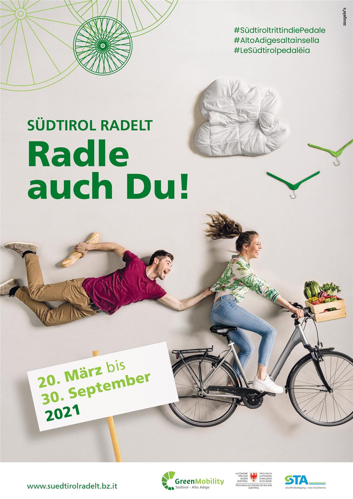 Für alle Südtirol-radelt-Aktionen gelten die jeweils aktuellen Corona-Bestimmungen. Südtirol radelt wird von Green Mobility in der STA - Südtiroler Transportstrukturen AG organisiert.