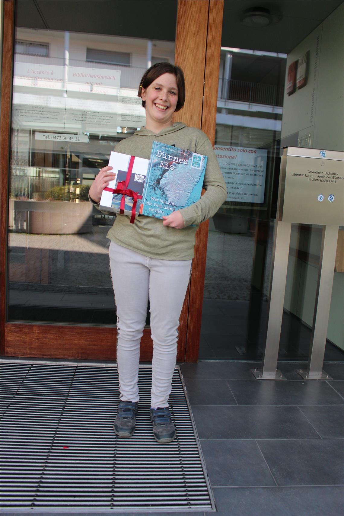 Nun sind mit coronabedingter Verspätung und Unterstüztung der Öffentlichen Bibliotheken auch die Hauptpreise übergeben worden. Die Preisträger und Preisträgerinnen haben entweder ein einminütiges Video oder ein Bild zu einem der Bücher der Leseaktion gestaltet. Eine Fachjury hat die insgesamt 69 Videos und 229 Fotos gesichtet, bewertet und sieben Hauptpreisträger ermittelt. Über ein I-Pad freuen dürfen sich David Tommasini aus Leifers für sein Video zu "Gregs Tagebuch 14", Daniele Bizzotto aus Bozen für sein Video zu "I segreti delle streghe". Carmen Egger aus Jenesien für ihr Video zu "Offline ist es nass, wenn es regnet", Hannah Aschbacher aus Lappach für ein Bild zu "Immer on", Emanuele Dellai aus Leifers für ein Bild zu "Wonder", Marlene Bormuth aus Lana für ein Bild zu "Dünnes Eis" und Anna Pompili aus Bozen für ein Bild zu "Qualcosa ci inventeremo".