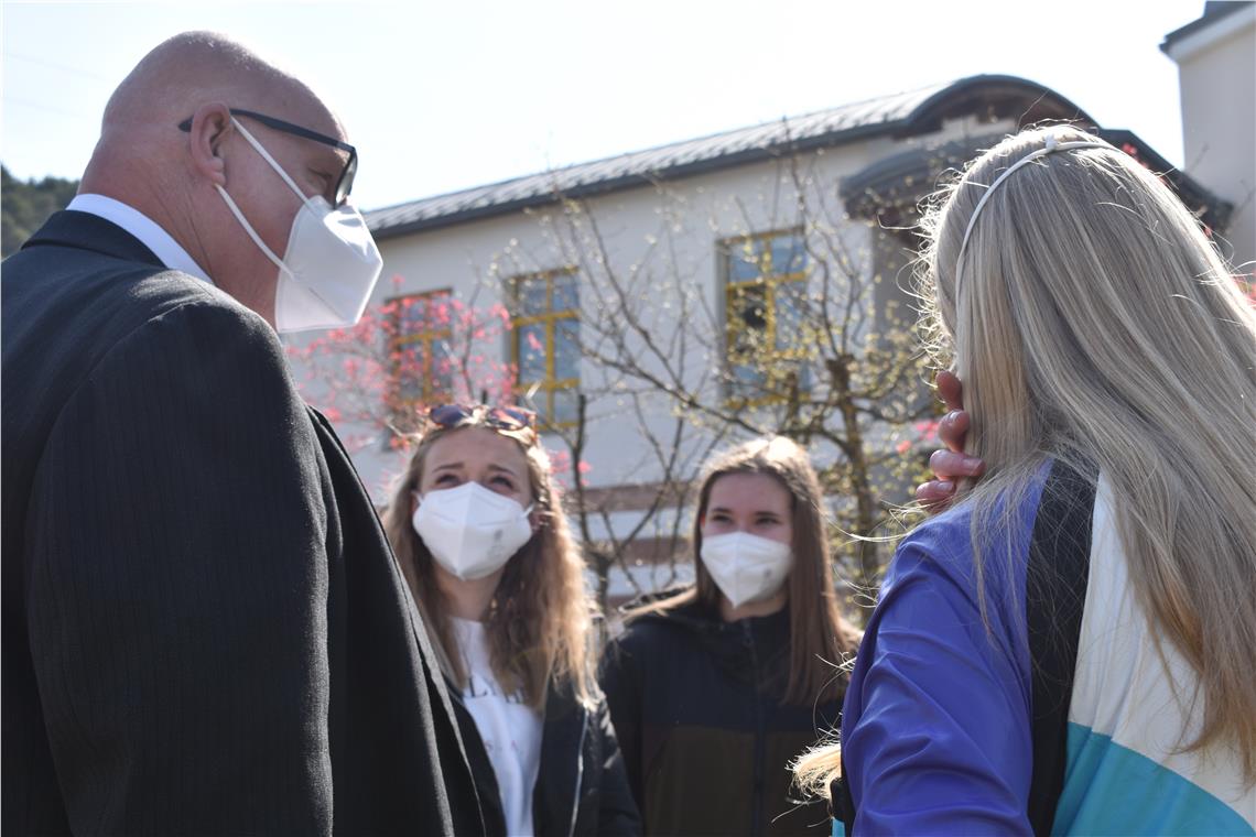 Groß war die Freude unter den 22 Schülerinnen, die am heutigen Freitag (9. April 2021) aus den Händen des Wettbewerbsleiters Hans-Georg Lambertz den ersten Preis – eine fünftägige Klassenfahrt nach Berlin mit Besuch im Bundeskanzleramt bei Angela Merkel – entgegen genommen haben. An der Prämierungsfeier in Tisens nahmen heute auch Bildungsdirektor Gustav Tschenett, die Direktorin der Pädagogischen Abteilung, Gertrud Verdorfer, Direktorin Gudrun Ladurner, Schulleiterin Christine Holzner und Projektleiterin Christine Gutgsell teil.