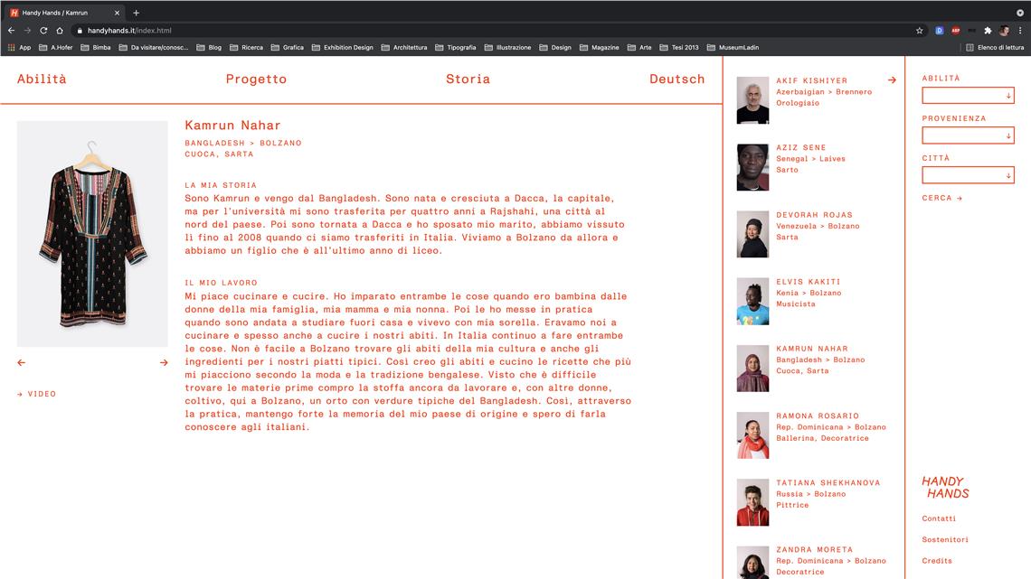 Um die Inklusion zu fördern, hat das Amt die neue Webseite handyhands.it eingerichtet. Dort werden die Geschichten, Berufe und Fertigkeiten von acht Menschen gezeigt, die aus fernen Ländern mit anderen Traditionen stammen und unterschiedliche handwerkliche, musikalische, künstlerische Fähigkeiten besitzen, die sie gelernt haben, aber derzeit nicht anwenden. Indem diese besonderen "verborgenen" Fähigkeiten nun sichtbar werden, soll den Personen mehr Würde verliehen werden. Künftig soll das Projekt auf weitere Personen ausgedehnt werden.