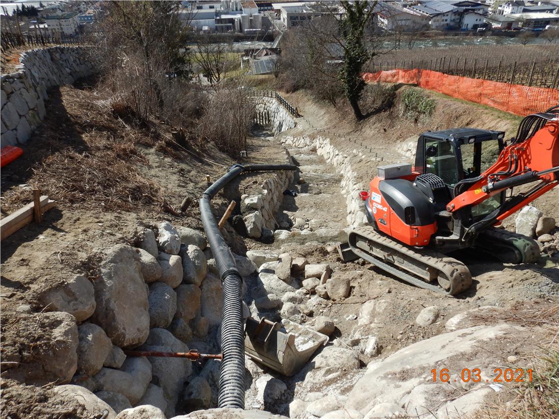 Die Weinbergquelle fließt 900 Meter von ihrem Ursprung in Elvas in der Gemeinde Brixen bis zum Eisack, davon hat das Landesamt für Wildbach- und Lawinenverbauung Nord in der Agentur für Bevölkerungsschutz nun insgesamt 800 Meter stabilisiert.