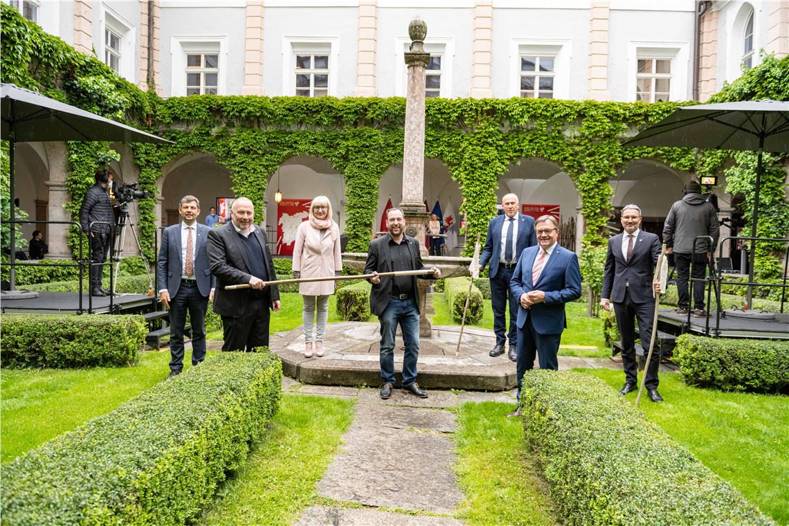 Schließlich wurde heute auch der offizielle Start des Euregio-Museumsjahres 2021 gefeiert, an dem über 60 Museen an 70 Standorten in den drei Ländern teilnehmen. Diese beindruckende Zahl an beteiligten musealen Einrichtungen und grenzüberschreitenden Kooperationen wurde mit den Wanderstecken auf der Bühne symbolisiert. Einer dieser Wanderstecken wird zudem mit einem GPS-Modul ausgestattet "auf Wanderschaft gehen" und von Museum zu Museum weitergereicht.