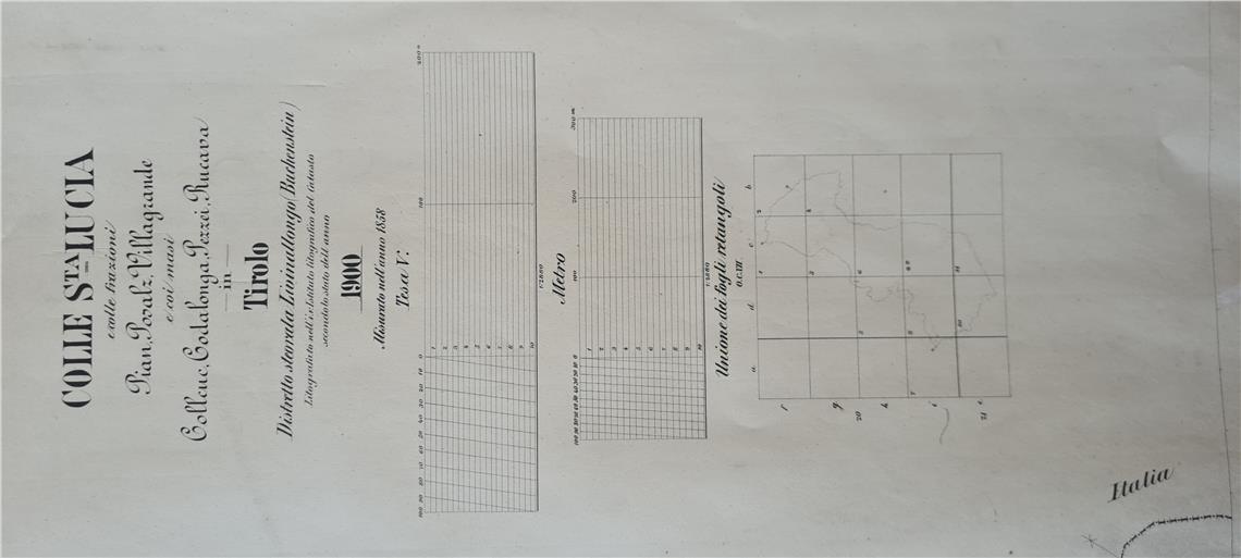Die Gemeinde Versail (Colle St. Lucia) lag vormals im Gerichtsbezirk Brixen. Bis zum Ende des Ersten Weltkriegs lautete die Ortsbezeichnung Buchenstein. Es handelt sich um eine der drei ladinischen Gemeinden des Gebietes von Ampezzo - neben Cortina d'Ampezzo und Livinallongo. Die Vermessungsarbeiten sind im Jahr 1858 durchgeführt worden; die Erstellung der Kartographie erfolgte 1900.
