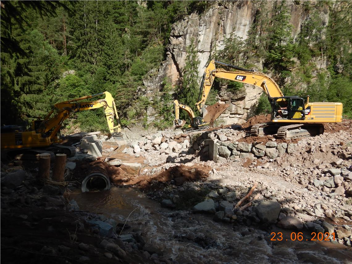 Nach den Schäden infolge von Gewittern mit Starkregen am vergangenen Freitag (18. Juni) hat die Wildbachverbauung sofort mit Aufräum- und Wiederinstandsetzungsarbeiten begonnen.