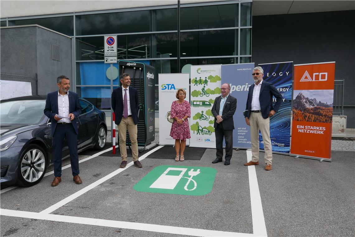 Fast 200 Ladesäulen für E-Fahrzeuge gibt es in Südtirol. "33 neue Hypercharger, kommen jetzt hinzu", so Alfreider bei der Präsentation der neuen Schnellladesäulen in Neumarkt mit den Projektpartnern.