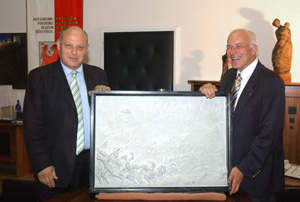 Il presidente del Land Tirolo Herwig van Staa ha consegnato oggi pomeriggio (venerdì 24) al presidente della Provincia Luis Durnwalder un prezioso dono, la copia dell'altorilievo del monumento funebre dell'imperatore Massimiliano I, conservato nella Chiesa di Corte di Innsbruck.