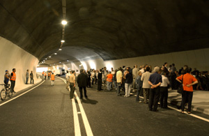 Nel suo intervento al portale nord della galleria, davanti a decine tra autorità e cittadini tra cui gli assessori provinciali Gnecchi, Frick e Cigolla, il presidente Durnwalder ha sottolineato che "questo lotto è solo il primo passo, perchè la Provincia punta a completare il progetto fino a Bronzolo nel giro di 4-5 anni, anche se l'impegno di spesa sarà di circa 100 milioni €." Durnwalder ha invitato le amministrazioni locali a proseguire nella buona collaborazione, "e se vi sono alcune questioni aperte per quanto riguarda il tracciato a Pineta, non facciamone un caso politico ma cerchiamo di decidere in fretta perchè la popolazione e l'ambiente hanno necessità di completare questa infrastruttura fondamentale." Durnwalder ha ricordato che la Provincia stanzia annualmente circa 100 milioni € per investimenti nelle strade e circa 60 milioni € nella sua manutenzione. "Ma in futuro, in previsione di una riduzione dei finanziamenti, sarà indispensabile un maggiore coinvolgimento dei Comuni nella pianificazione e nella realizzazione delle opere viarie, a cominciare dalla messa a disposizione dei terreni." Dall'assessore provinciale Florian Mussner è giunto un ringraziamento a tutti coloro, dai tecnici alle maestranze, hanno lavorato per cinque anni alla realizzazione del primo lotto, "anche se nella tempistica si è verificato qualche problema, poi superato. È stato il più grande lavoro stradale a livello provinciale - ha sottolineato Mussner - ma non abbiamo registrato nessun incidente. Ora attendiamo dal comune di Laives il via libera per procedere nella variazione per la nuova strada a cielo aperto a Pineta e proseguire nei lavori." Mussner ha ricordato l'impegno della Provincia nella realizzazione di opere viarie necessarie per alleggerire la situazione traffico: "Oltre a Laives, i progetti sono in fase avanzata a Bressanone, in Badia, a Vandoies, a Foresta-Tel e a Ora." Infine l'assessore si è appellato ancora una volta alla comprensione degli utenti quando sono in corso lavori stradali, "necessari per aumentare la vivibilità del territorio."