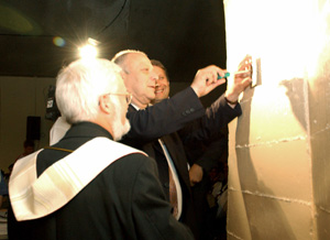 Durante la cerimonia, sulle note della banda musicale di Laives, il presidente Durnwalder e il vescovo Egger hanno apposto all'ingresso del tunnel una targa raffigurante san Critoforo, patrono degli automobilisti e dei pellegrini.