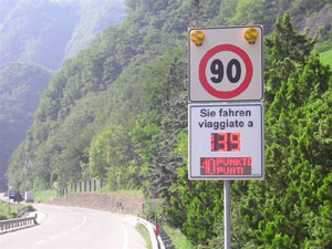 L'Assessorato provinciale ai Lavori pubblici ha deciso di utilizzare segnali stradali “intelligenti” per avvisare gli automobilisti quando superano i limiti di velocità, informando anche sulle sanzioni a cui si va incontro. In sei tratti stradali altoatesini sono infatti stati posizionati cartelli che dovrebbero indurre a togliere il piede dall'acceleratore. In caso di superamento del limite questi cartelli indicano la velocità a cui si sta viaggiando, quella consentita e quanti punti verrebbero tolti dalla patente. L'idea di utilizzare questi cartelli è stata dello stesso assessore Florian Mussner.