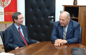 Progetti di collaborazione nei settori economici e dell'innovazione nonchè in quello della formazione fra Alto Adige ed Austria sono stati al centro del colloquio che nel tardo pomeriggio di oggi, martedì 13 settembre, si è svolto a Palazzo Widmanna Bolzano fra il presidente della Provincia, Luis Durnwalder, il presidente della Camera di Commercio austriaca, Christoph Leitl, accompagnato da stretti collaboratori e dal console generale austriaco a Milano, signora Eva Maria Ziegler, e dall'ambasciatore austriaco a Roma, Alfons Kloss.
