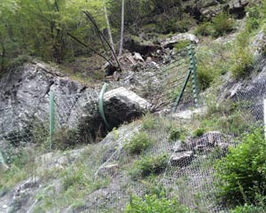 Una delle reti paramassi lungo la Statale 242, due km dopo l'abitato di Ponte Gardena in direzione di Ortisei, ha bloccato stamattina (lunedì 10) un sasso di circa 4 metri cubi, evitando problemi al traffico e confermando gli standard di sicurezza della strada per la val Gardena.