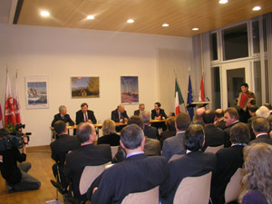 Nella serata con i sindaci Durnwalder ha ricordato l'importanza della cooperazione transfrontaliera soprattutto riguardo alla politica di difesa delle Alpi e agli investimenti strategici come quello per la realizzazione del tunnel del Brennero.