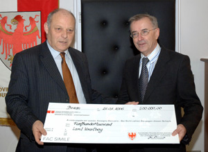 Il presidente Durnwalder ha consegnato al collega Sausgruber il contributo di 500.000 euro a favore di coloro che sono stati colpiti dalle recenti alluvioni verificatesi nel Vorarlberg.