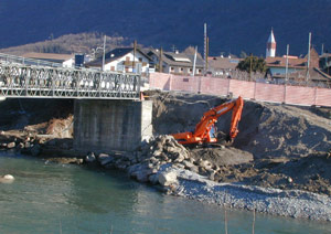 Per risolvere la situazione e ripristinare il collegamento, gli operai dell'Azienda speciale per la sistemazione dei bacini montani sono al lavoro, sotto la direzione di Peter Egger, per risanare il pnte Bailey. "Il ponte verrà completamente ristrutturato, allungato di sei metri e alzato di mezzo metro", spiega il progettista Hanspeter Staffler, direttore dell'Ufficio provinciale Sistemazione bacini montani Sud.