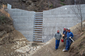 Nell'estate del 1991 i detriti trascinati a valle avevano invaso l'Adige bloccando in pratica il corso del fiume. Per evitare il ripetersi di emergenze simili, la Ripartizione provinciale Opere idrauliche ha deciso di consolidare la protezione della zona e, dopo quella del 2004, ha ultimato anche la costruzione della seconda briglia di contenimento in cemento armato. L'obiettivo dei tecnici provinciali è quello di disporre, con le due infrastrutture alte ciascuna 12,5 metri, di un bacino di contenimento capace di raccogliere fino a 25mila metri cubi di materiale. "Abbiamo anche avuto cura di progettare le briglie in modo tale da non pregiudicare gli alberi di castagno posti nelle immediate vicinanze", sottolinea il direttore Pollinger.