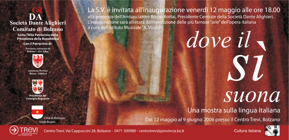 La conferenza si inquadra in una serie di iniziative culturali promosse dalla Società Dante Alighieri in collaborazione con il sostegno dell’Istituto pedagogico italiano e dell’Istituto musicale “A. Vivaldi” in concomitanza con la mostra "Dove il sì suona. Viaggio attraverso la lingua la lingua italiana”, allestita presso il Centro Trevi. La mostra mostra itinerante ha già riscosso un notevole successo a Berlino ed a Zurigo.