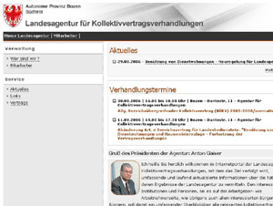 L'agenzia provinciale per la contrattazione collettiva è presente da qualche giorno su internet, ed in particolare sulla Rete Civica, con una proprio sito web. Cliccando www.provincia.bz.it/agenzia-contrattazione gli utenti interessati potranno trovare tutte le informazioni utili sui contratti collettivi attualmente in vigore, sulle attività dell'agenzia, e sui prossimi impegni in calendario.