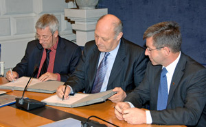 Lo scambio di dati concordato ufficialmente con Tirolo, Trentino, Grigioni e Friuli Venezia Giulia consente di migliorare la precisione e i parametri per l’individuazione dell’epicentro e della magnitudo (intensità sismica) dei sismi che si verificano o che vengono percepiti in Alto Adige e favorisce inoltre l'indagine sul pericolo sismico. Lo specifico protocollo transfrontaliero è stato firmato a Palazzo Widmann dal presidente Durnwalder e dai rappresentanti delle altre Regioni e Province.