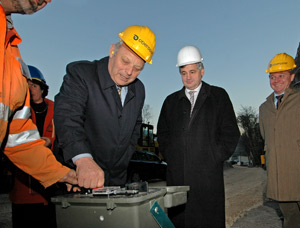 Il presidente Durnwalder e l’assessore ai lavori pubblici Florian Mussner hanno fatto brillare questo pomeriggio (venerdì 1 dicembre) la prima carica per la perforazione all’imbocco sud della galleria Castelfeder a Ora. L’opera fa parte del primo lotto dei lavori per la realizzazione della circonvallazione.