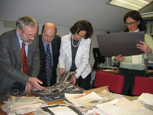 Il direttore dell'Archivio provinciale Josef Nössing con Stefano Consolati e le discendenti di Julius Steinkeller, Doris Pizzecco Manfrini e Utta Steinkeller Brugger