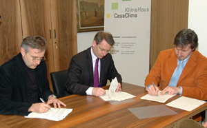 Il Comune di Chions, in provincia di Pordenone, potrà avvalersi del protocollo CasaClima per incrementare l'ottimizzazione dell'eficienza energetica degli edifici sul suo terrritorio. Lo prevede una convenzione con l'Agenzia CasaClima di Bolzano siglata stamane (7.02.07) da Norbert Lanschner, dall'assessore provinciale Michl Laimer e dal responsabile dell'Area urbanistica ed edilizia privata del Comune di Chions, Golfredo Castelletto, alla presenza dell'assessore comunale all'urbanistica e ambiente, Dennis Facca.