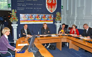 Una folta delegazione della giunta provinciale ha presentato questa mattina a Bolzano il progetto "Bookstart", che punta ad avvicinare i bambini, ma anche i loro genitori, alla lettura. Al compimento dei 6 e dei 18 mesi i piccoli altoatesini riceveranno a casa due cofanetti contenenti libri illustrati dedicati alla prima infanzia, una guida alla lettura per i genitori, e altro materiale.