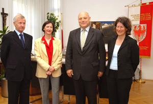 Con il rettore Rita Franceschini e il presidente Hanns Egger è giunta a Palazzo Widmann anche Johanna Vaja, nuova direttrice generale, per una prima presentazione ufficiale. Luis Durnwalder - nella sua veste di Presidente della Provincia ma anche Presidente onorario della LUB - si è informato sullo stato di salute e sui programmi futuri dell'università altoatesina.
