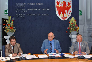 Il presidente Durnwalder presenta la terza prova di allarme provinciale, in programma mercoledì 10 ottobre alle 10 (Foto USP/Pertl)
