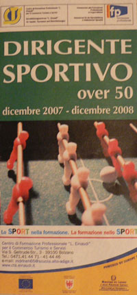 Da volontari a volontari specializzati. Da preziosi collaboratori, a vario titolo delle società sportive a figura professionale ricca di competenze. Il corso “Dirigente sportivo over 50”, organizzato dal Centro di Formazione Professionale “L. Einaudi” di Bolzano in collaborazione con Coni e Cip e co-finanziato dal Fondo sociale europeo, risponde alla domanda di informazione, formazione e aggiornamento di coloro che operano nell'ambito sportivo. L'attuale dirigente sportivo, infatti, non può essere solamente un appassionato di sport, ma deve essere una persona in grado di progettare iniziative, motivare atleti e tecnici, coordinare le persone che operano a vario titolo nella società. Il progetto intende giungere alla professionalizzazione dell'attività di dirigente sportivo caratterizzato da una procedura di tipo manageriale, rispetto a quella legata al buon senso dell'improvvisazione. Durante il corso, articolato in moduli, si svilupperanno le competenze relative alla sicurezza delle manifestazioni sportive, puntando sulla sensibilizzazione ai valori dello sport. Il percorso formativo, inoltre, prevede lo sviluppo e l’acquisizione di una serie di competenze trasversali quali quelle comunicative e relazionali, l’informatica e la capacità di lavoro in team.
