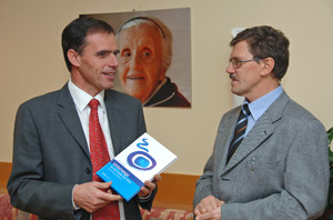 In occasione della visita presso il Centro ciechi di Bolzano Nikolaus Fischnaller, ipovedente, ha consegnato all’assessore il suo libro “Vedere con gli occhi dell’anima, vivere con le immagini della luce perduta”, un libro in cui l’autore parla di come sia riuscito a superare la sua menomazione, acquisendo sicurezza ed indipendenza.