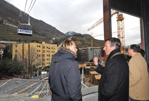 Widmann al primo viaggio di prova della nuova funivia del Renon