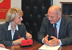 Danuta Hübner, polacca, commissario UE alle politiche regionali, sta compiendo una visita in Alto Adige su invito del presidente Durnwalder. Nella sua permanenza visionerà tra l'altro il Centro di sperimentazione Laimburg e alcuni progetti di ricerca finanziati con i fondi UE. Stamattina a Palazzo Widmann il presidente Durnwalder ha fornito un quadro di come la Provincia impiega le risorse finanziarie assegnate da Bruxelles e di come vengono attuati i programmi UE in Alto Adige. "I fondi strutturali sono fondamentali per lo sviluppo di un territorio come il nostro, privo di grandi centri urbani e con piccoli paesi", ha sottolineato Durnwalder al commissario UE ricordando i dati dei finanziamenti europei fino al 2013: 312 milioni € per lo sviluppo regionale, 160 milioni dal Fondo sociale europeo, 75 milioni per le infrastrutture rurali, 170 milioni per la cooperazione transfrontaliera (90 per i programmi con la Svizzera, 80 con l'Austria) e 15 milioni € per il programma Leader. "Sono circa 100 milioni all'anno che giungono in Alto Adige ma la loro importanza va al di là dell'aspetto finanziario, perchè grazie a questi programmi possiamo sviluppare molto sul territorio", ha aggiunto Durnwalder.