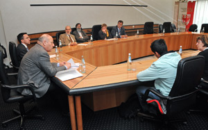 Il presidente Durnwalder e l'assessore Tommasini nell'incontro con rappresentanti del mondo scolastico italiano (Foto USP/Pertl)
