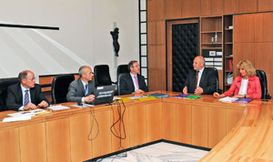 Il presidente Durnwalder e l'assessore Repetto con i vertici Iveco (Foto USP/Pertl)