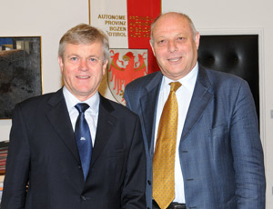 Durnwalder si è poi soffermato sullo sviluppo dell'autonomia altoatesina, sulla situazione nei settori turismo e agricoltura e sulle strategie della Provincia nei prossimi cinque anni di legislatura. Nell'incontro a Palazzo Widmann si è parlato anche dell’importanza di ammodernare le vie di collegamento, a cominciare dall’asse ferroviario del Brennero, e della cooperazione sovraregionale tra l’Alto Adige e diverse regioni di Germania.